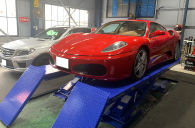 「車軸を適正な角度」に調整するホイルアラインメント用リフト完備。